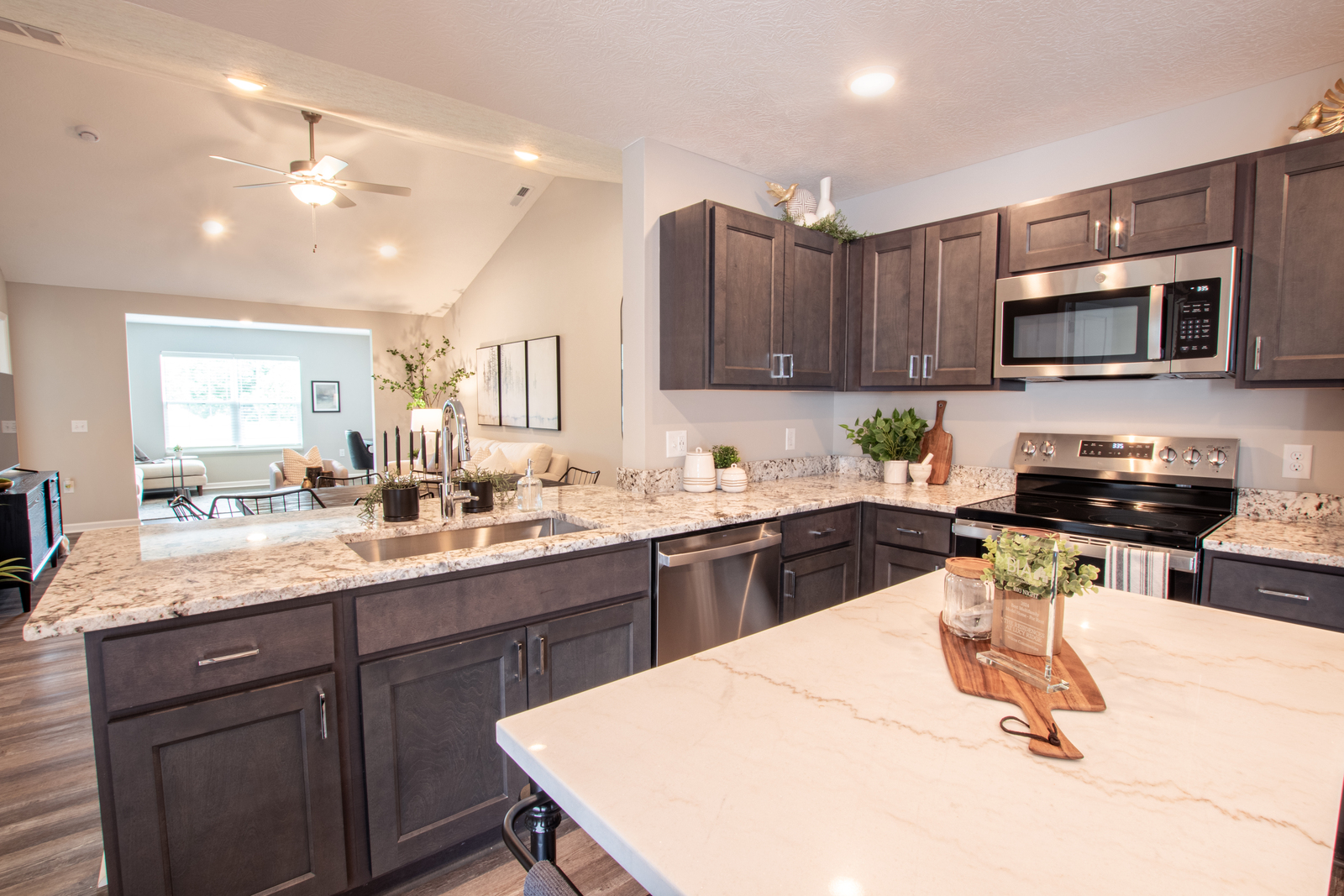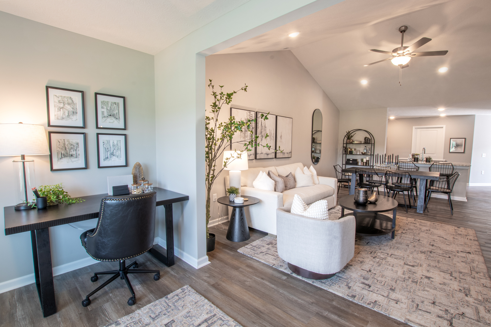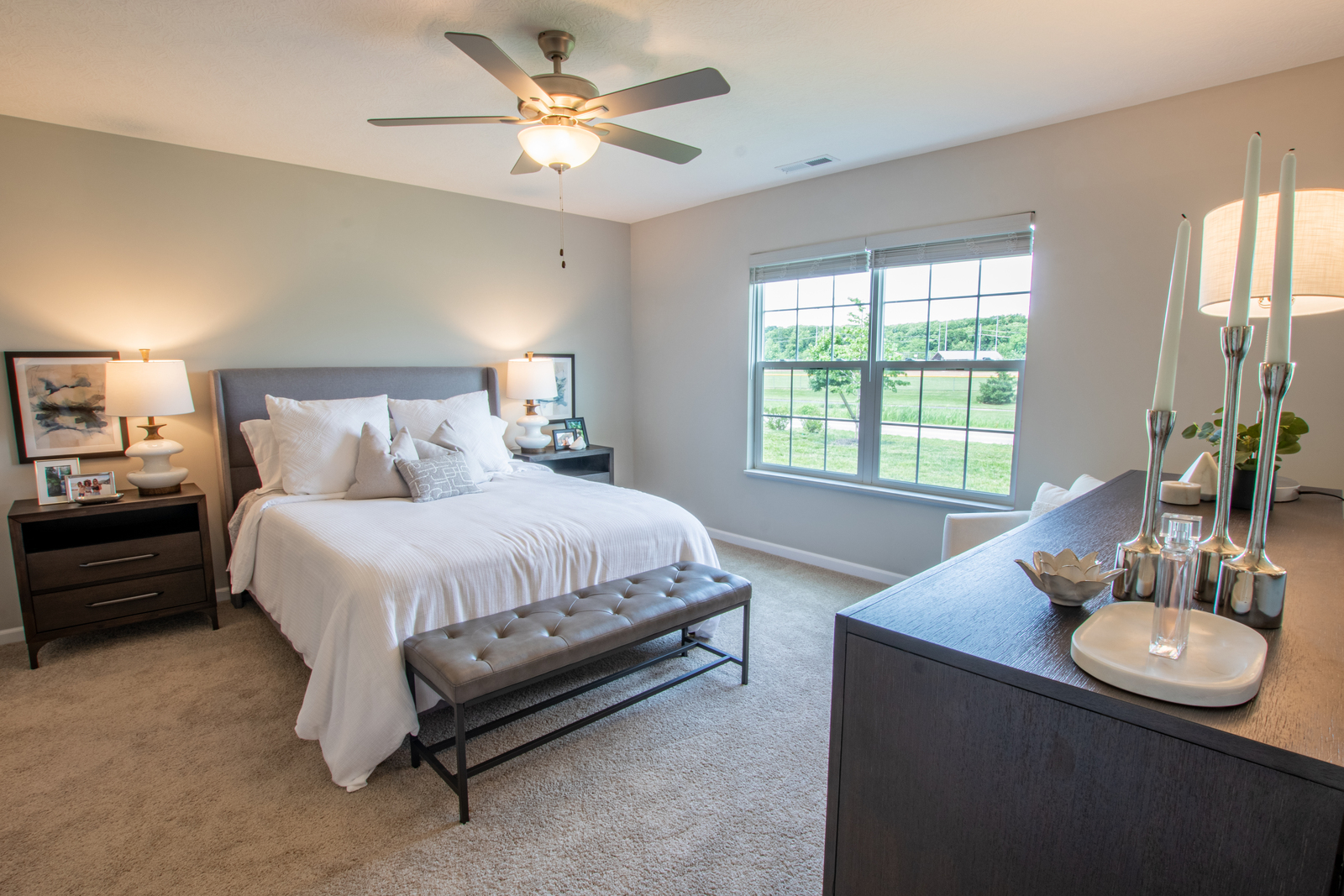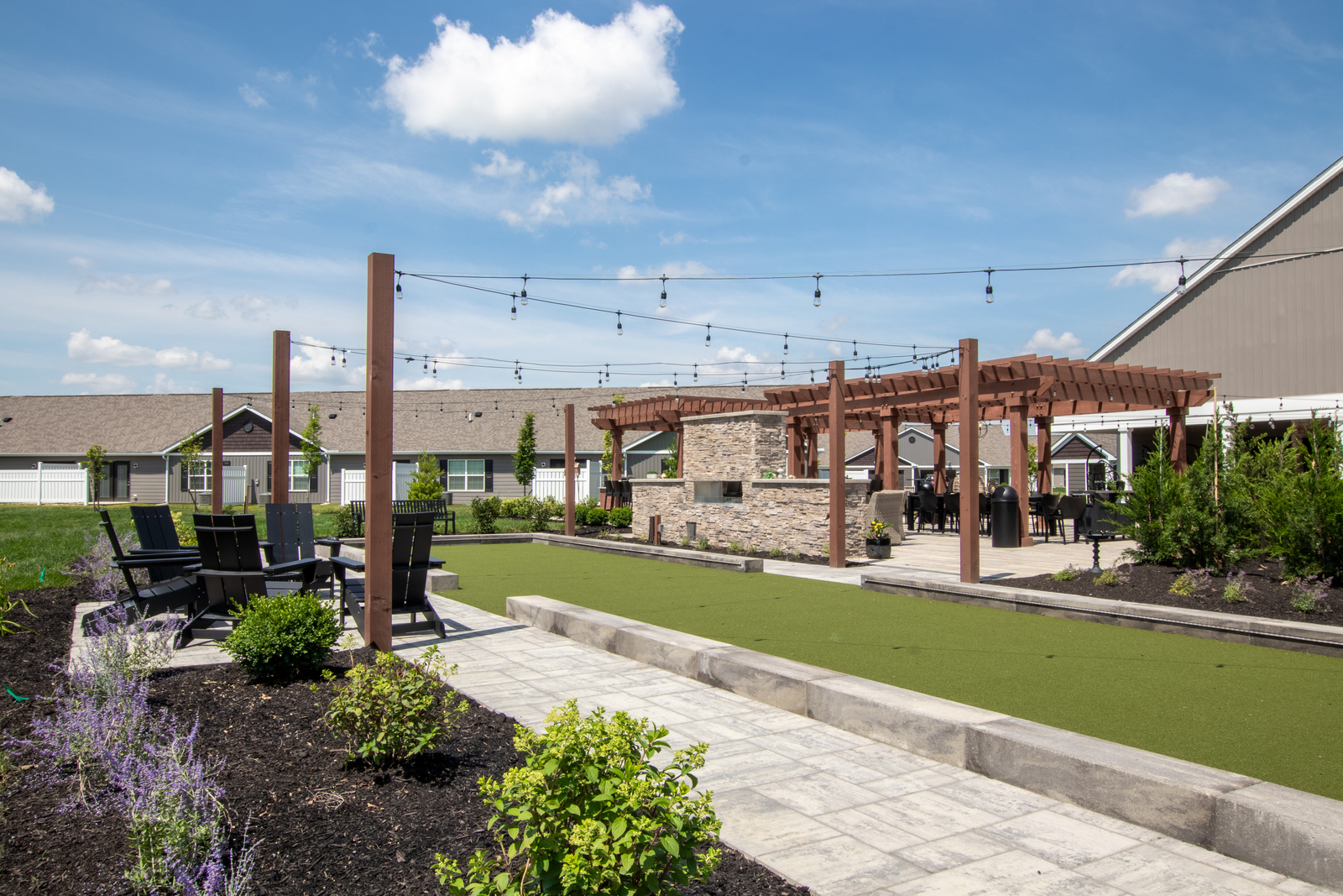 The Residences at Lucy Ridge in Delaware, Ohio, features single-story, suburban-classic architecture with modern comforts. Floor plans include 2 bedrooms, 2 bathrooms, and attached 2-car garages, offering up to 1,383 sq. ft. of living space with cathedral ceilings and private outdoor patios. Located within the Delaware City School District, the community includes a 24/7 fitness center, coffee bar, clubhouse, bocce court, outdoor seating areas, wellness garden, community garden, and on-site dog park. Lucy Ridge is designed for easy, low-maintenance living with a focus on comfort, style, and connection to community.