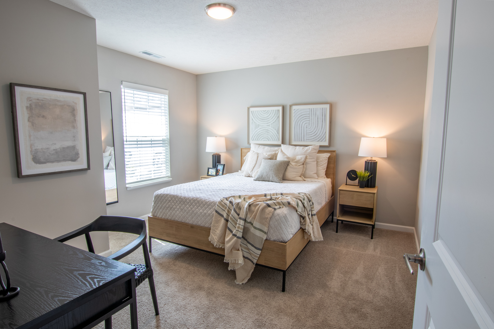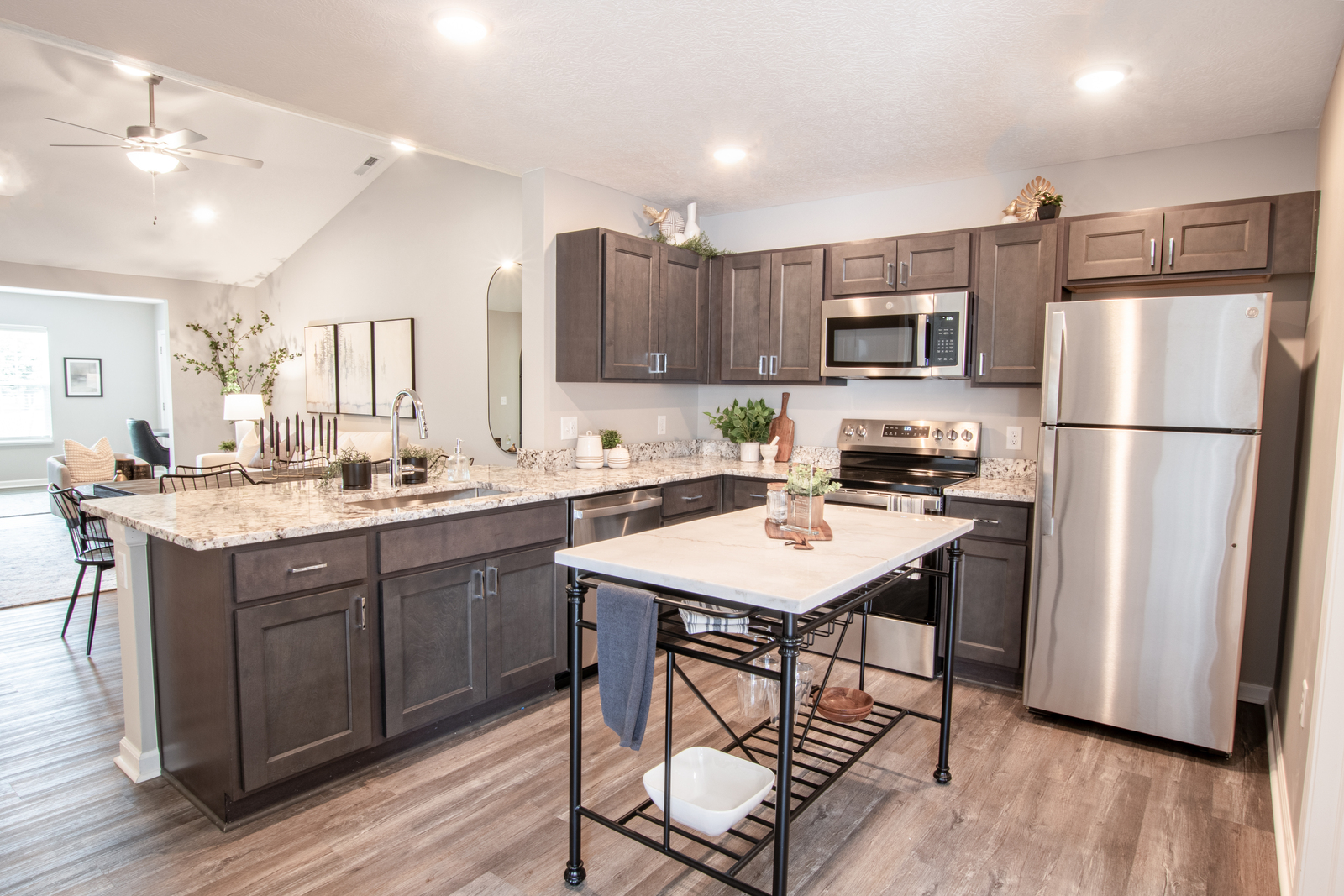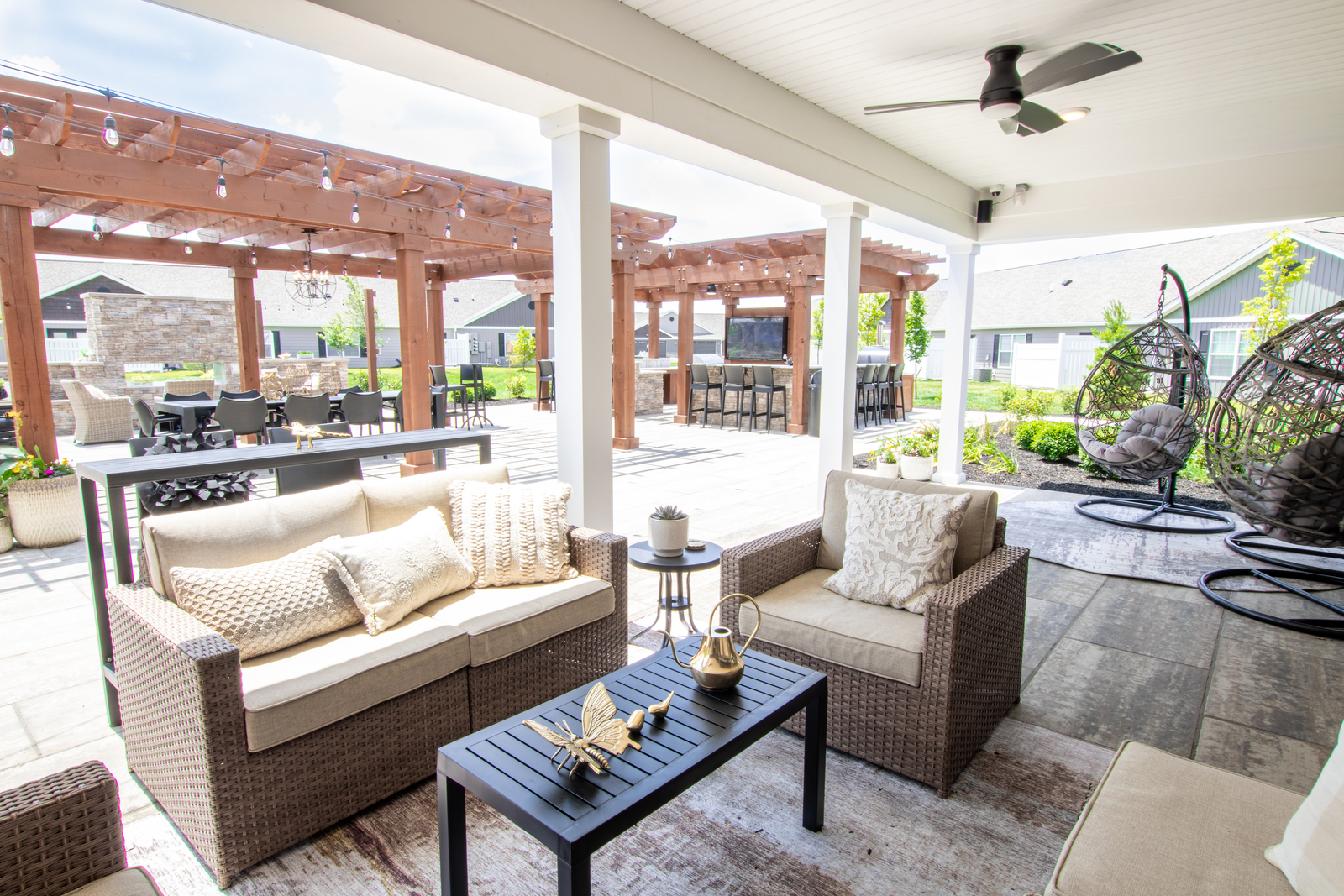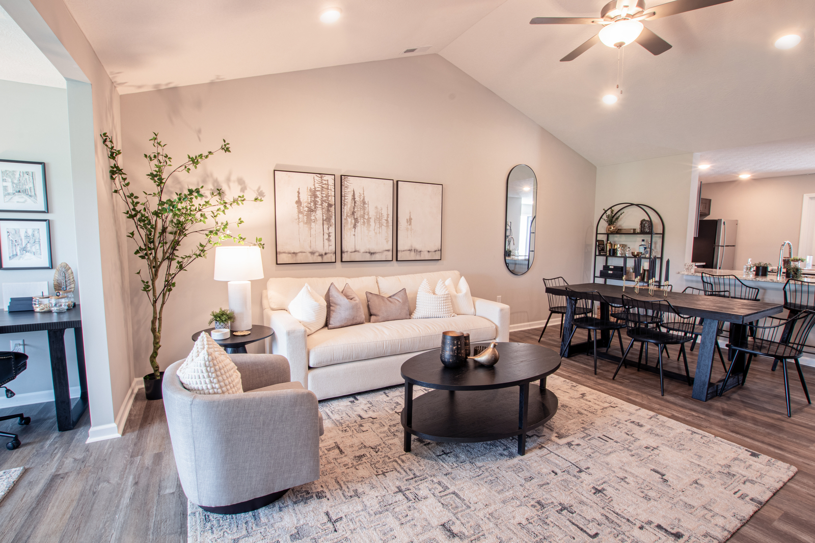 The Residences at Lucy Ridge in Delaware, Ohio, features single-story, suburban-classic architecture with modern comforts. Floor plans include 2 bedrooms, 2 bathrooms, and attached 2-car garages, offering up to 1,383 sq. ft. of living space with cathedral ceilings and private outdoor patios. Located within the Delaware City School District, the community includes a 24/7 fitness center, coffee bar, clubhouse, bocce court, outdoor seating areas, wellness garden, community garden, and on-site dog park. Lucy Ridge is designed for easy, low-maintenance living with a focus on comfort, style, and connection to community.