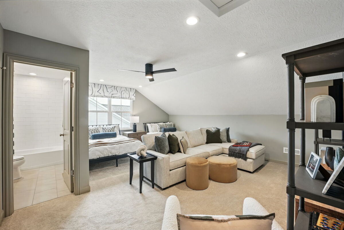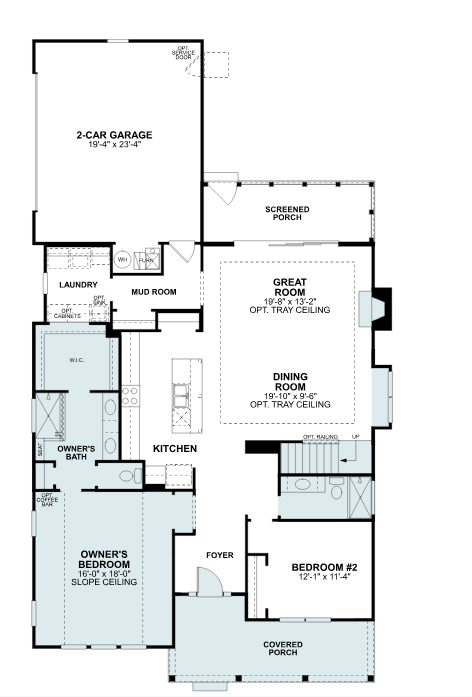 Take a look at this extraordinarily designed ranch-style home boasting 2,220 square feet of living space The spacious kitchen opens to an extensive great room, equipped with a cozy fireplace to enjoy cold winter nights. A screened-in patio lines the backyard as natural light shines through in the warmer months. Two bedrooms round out the main floor, including the owner's retreat with a sloped ceiling and elegant bathroom. Upstairs is a versatile bonus room with a full bathroom, perfect for a guest suite or home office.
